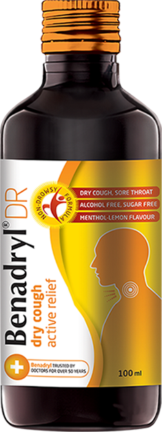 Benadryl® has a specific variant for dry cough & sore throat - Benadryl® DR.